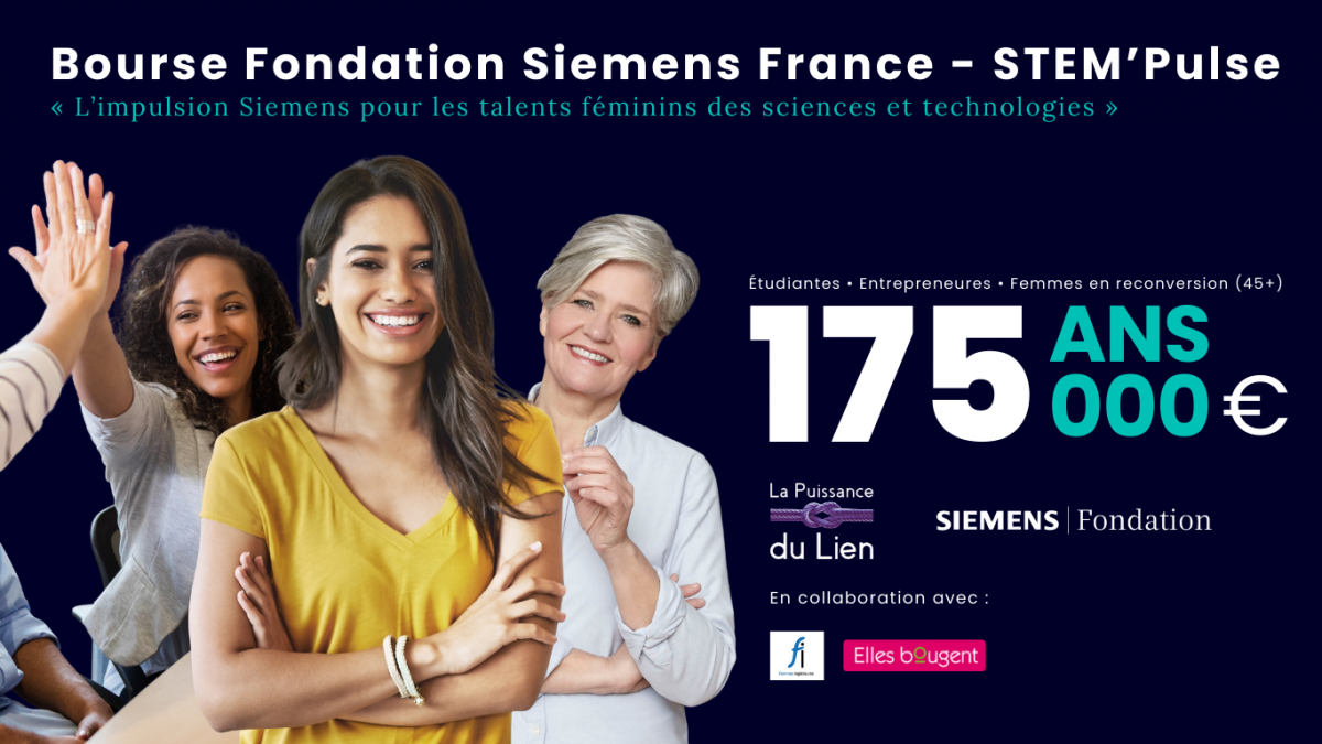 A l’occasion des 175 ans de Siemens en France, La Fondation Siemens France s’engage en faveur de l’égalité des chances et de la diversité dans les carrières scientifiques et technologiques. En partenariat avec l’association La Puissance du Lien, un programme de bourses de 175 000 euros est lancé pour accompagner sur trois ans des femmes étudiantes, entrepreneures ou en reconversion (femmes +45 ans) dans les domaines des STEM (Sciences, Technologies, Ingénierie, Mathématiques). Au-delà du soutien financier, ce programme leur offrira un accès à un réseau de mentorat, de rôle modèles et d’expertes engagées, au travers d’un écosystème d’associations partenaires. |
